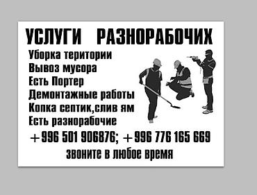 краска ворот, фундамент, стяжка засыпка, демонтаж кылабыз , баардык инструменттер бар, портер бар жумуш болсо чала бериниздер акчасын келишимдуу турдо кылып беребиз