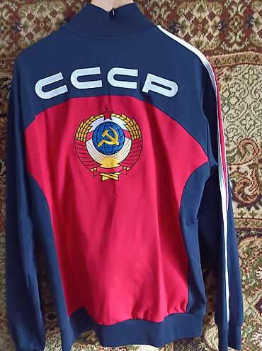- Дизайн: объёмная вышивка герба на спине, крупная надпись «СССР» на спине и на брюках; на груди — эмблема.