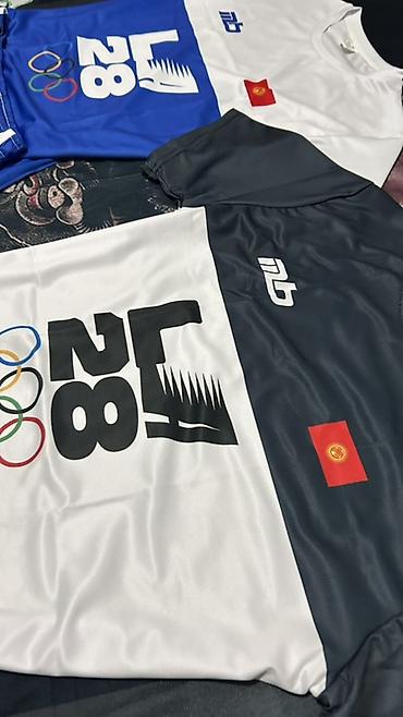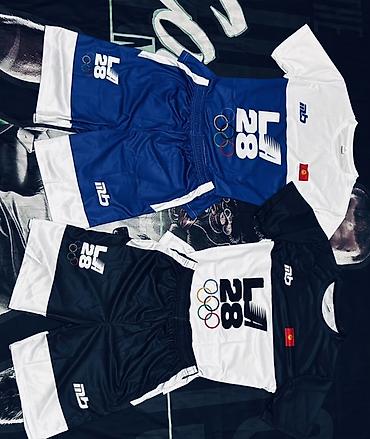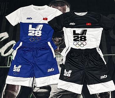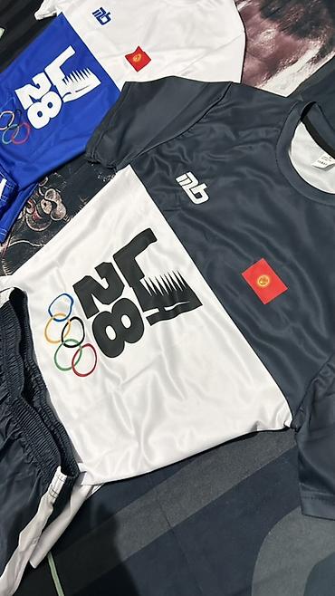 - Дизайн: крупный принт LA 28 с олимпийскими кольцами на футболке и шортах, логотип mb, нашивка с флагом. Контрастные вставки.