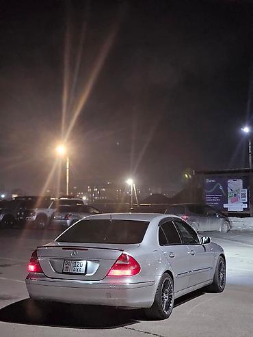 Mercedes-Benz E‑Class W211, серебристый седан (рестайлинг дорестайл с «двойными» фарами).