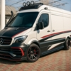 Mercedes-Benz Sprinter (средняя база), желтый корпоративный окрас. Ключевые особенности: - Дизайн и аэродетали в стиле Brabus: фирменные наклейки «Powered by BRABUS», декоративные полосы, расшире...