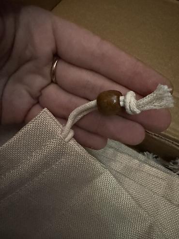 Набор небольших мешочков на шнурке из плотной льняной/хлопковой ткани натурального бежевого цвета.