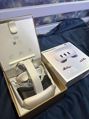 Очки виртуальной и смешанной реальности Meta Quest 3 (белые) Пользовался неделю от силы в идеальном состоянии. - В комплекте: гарнитура Meta Quest 3, два контроллера, кабель USB‑C/зарядка, фирмен...