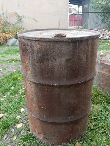 Металлические бочки 200 л цена за 1 штуку 2500сом,торг уместен - Объем: ориентировочно 200 литров каждая - Материал: сталь, оцинкованные (серебристые) и черная - Конструкция: герметичная крышка ...