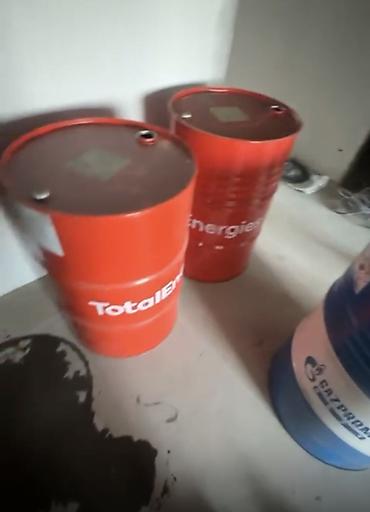 Металлические бочки 200 л (примерно) — набор разноцветных стальных барабанов под ГСМ/масла. Характеристики: - Объем: стандартные индустриальные бочки около 200 литров. - Материал: сталь, жесткие с...