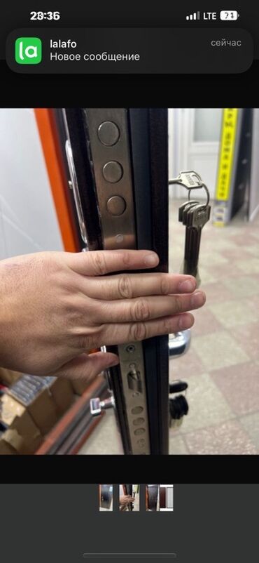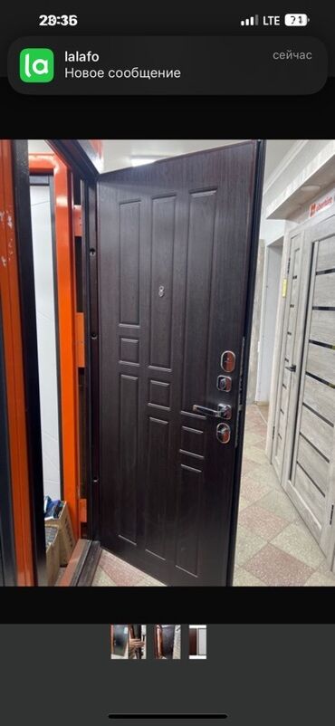 Входная дверь с отделкой под дерево и вертикальными полосами. Черная металлическая рама обеспечивает прочность и современный вид. Врезной замок и глазок предоставляют безопасность. Подходит для уст...