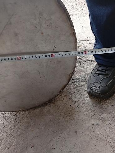 Металлическая емкость с краном - Материал: металл (толстостенная труба/бак, сварные швы по периметру). - Форма: цилиндр с плоским дном. - Диаметр по верху: около 40 см (на фото рулетка показывает ...