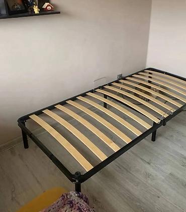 Металлическая односпальная кровать-основа с ламелями, размер 90×200
