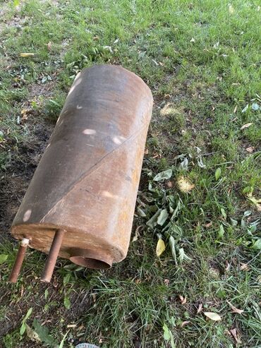 Металлическая емкость/бак цилиндрической формы. - Материал: сталь, толщина стенки визуально массивная. - Ориентировочные габариты: длина около 1,5–1,8 м, диаметр порядка 70–90 см. - Конструкци...