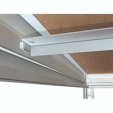Стеллаж состоит из стоек и балок из высокопрочной стали с ребрами жесткости. Настил выполнен из фанеры толщиной 10 мм. Балки крепятся замковым соединением. Шаг регулировки полок — 50 мм. Покрытие — полимерно-порошковое, светло-серое (RAL 7035).