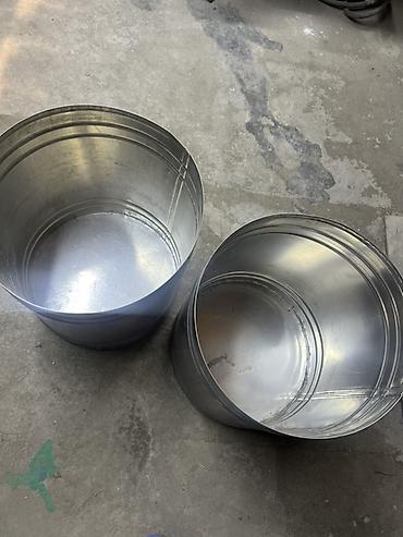 - Материал: листовой металл (оцинковка/нержавейка визуально блестящая), цилиндрическая форма.