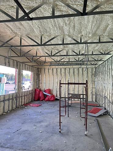 - Тепло‑ и шумоизоляция: напыление ППУ, утеплённая кровля, защита от мостиков холода.
