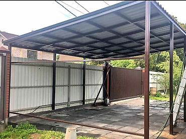 - Изготовление и монтаж навесов любых типов: от лаконичных прямых каркасов из профильной трубы до арочных конструкций с декоративной ковкой. Перекрытие — поликарбонат, профнастил или иные листовые материалы по выбору. Подбор сечения и шага обрешётки под снеговую/ветровую нагрузку. Точные узлы примыкания, водоотвод, аккуратные сварные швы, порошковая или защитная грунт‑эмаль.