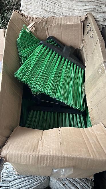 - Пластиковые метлы с длинными рукоятками: жёсткая синтетическая щетина (разные цвета), удобная посадка на держатель, подходят для улицы, асфальта, плитки и производственных помещений.
