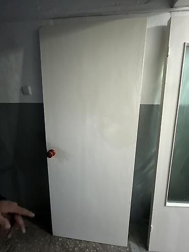 Межкомнатная дверь, Б/у, Глухие, Двухстворчатая, Деревянная, С зеркалом, цвет - Белый