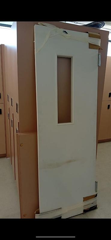 Деревянная входная/межкомнатная дверь с фрамугой. Характеристики: - Габариты проема (с коробом и фрамугой): 89×240 см - Количество: 2 шт. - Материал: дерево - Конструкция: полотнище с филенками, в...