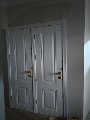 Белая межкомнатная дверь с прямоугольной вставкой из затемненного