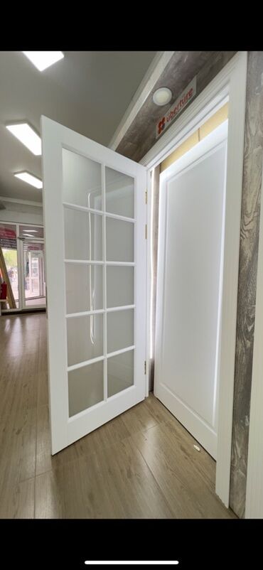 Межкомнатная дверь белого цвета с филенками и остеклением