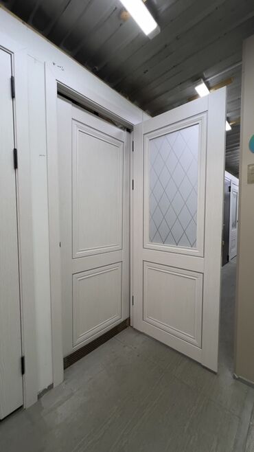 Белая межкомнатная дверь с современным дизайном. Дверь имеет шесть