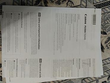- В комплекте на фото: МФУ Canon PIXMA TS3340, кабель питания, USB‑кабель, документация/руководство по технике безопасности и важной информации