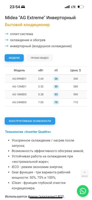 Используется фреон (хладагент) R32.