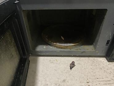 - Корпус черного цвета, фронтальная стеклянная дверца с металлической сеткой.