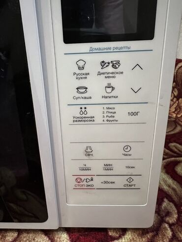 - Режим СВЧ с выбором времени: часы, 10 мин, 1 мин, 10 сек, а также кнопка +30 сек.