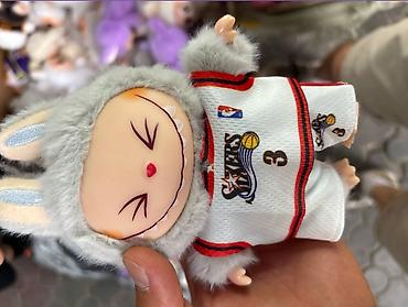 - Сменные наряды: спортивные костюмы в стиле баскетбольных майок (в т.ч. с номером 30 Curry и вариант с логотипом 76ers) и яркие комплект‑брюки с панамой в розовом или бежевом цвете с монограммным узором.