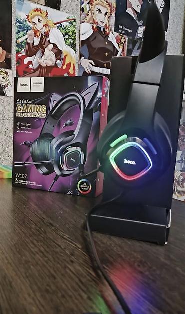 Милый геймерский набор: кошачьи наушники Hoco + Kuromi - Проводная