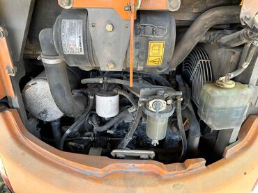 - Двигатель Yanmar (дизель), доступ к узлам через задний отсек; видны топливный/масляный фильтры, воздушный фильтр, радиатор, расширительный бачок.