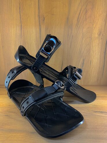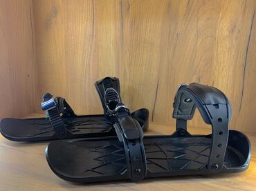 Компактные короткие лыжи-скейты для катания по снегу. Крепятся прямо на зимнюю обувь и позволяют свободно скользить, выполнять повороты и торможения, как на мини-сноуборде.
