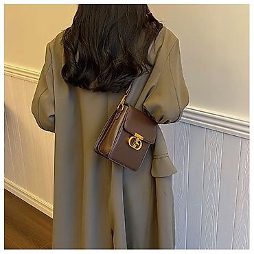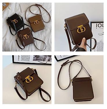Мини-сумка через плечо, коричневая - Формат: компактная вертикальная