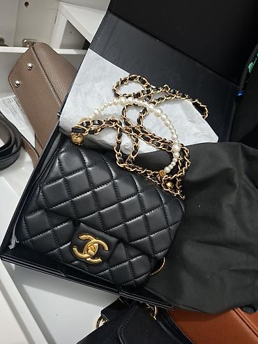 1) Chanel Classic Flap Mini, черная, кожа с мателассé, фурнитура под золото. Цепочная лямка с кожаной вставкой и декоративными жемчужинами, фирменная застежка CC. В комплекте фирменная коробка и пыльник.