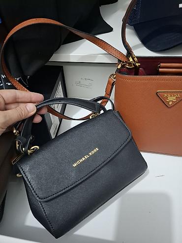 4) Michael Kors, компактная кросс-боди, черная, гладкая кожа, клапан на магнит, тонкий ремень-цепочка с кожей.
