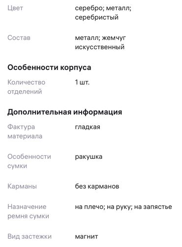 СеребристыйМини сумка Ракушка. В идеальном состоянии, нужна была на один вечер для образа, поэтому продаю. Цена: 900 сом, без скидок. Брала за 1500к