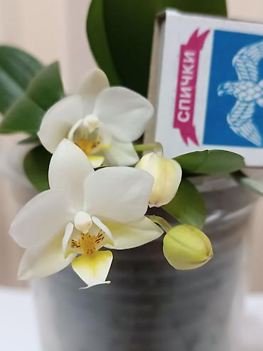 Для любителей мини орхидей! посадка из двух одинаковых орхидей, коробка спичек для понимания размера. На данный момент цветет одна