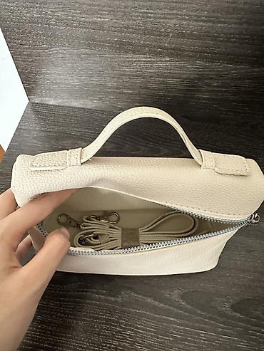 Миниатюрная женская сумка-планшет из фактурной экокожи цвета айвори.