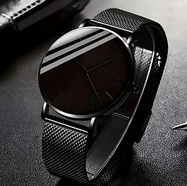 Минималистичные наручные часы с чёрным циферблатом и металлическим
