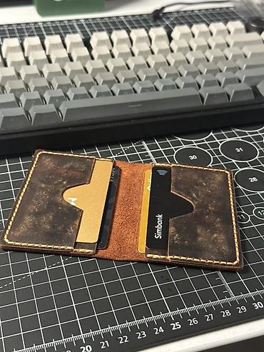 Минималистичный кожаный кардхолдер, выполнен полностью вручную из