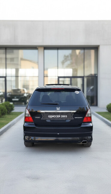 Отличный семейный и путешественнический минивэн с просторным салоном и развлекательной системой для задних пассажиров. На номерной рамке указано: «Одиссей 2003». Маркировка на корме: Odyssey Absolute.