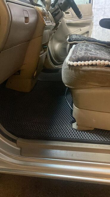 - Салон: бежевый интерьер, передняя панель с декоративными вставками, тканевые сиденья, накидки/чехлы, ковры-«соты».