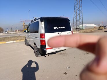 - Задняя часть: вертикальные фонари, стекло с большой наклейкой HONDA, дверь багажника распашная вверх, задний дворник.