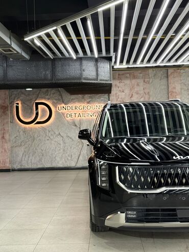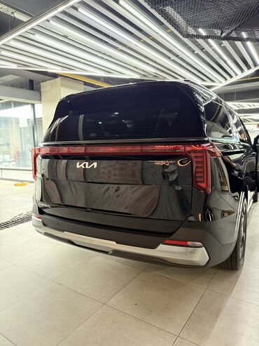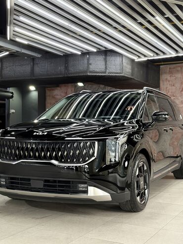 Kia Carnival с современным дизайном кузова. Автомобиль оснащен широкой радиаторной решеткой с узором "звездное небо" и обновленным логотипом Kia. Фары интегрированы в решетку, создавая единый визуальный элемент. Задняя часть автомобиля имеет широкие горизонтальные фонари, соединенные светодиодной полосой. Рейлинги на крыше позволяют увеличить грузоподъемность. Модель подходит для семейных поездок и деловых перевозок, обеспечивая комфорт и простор в салоне.