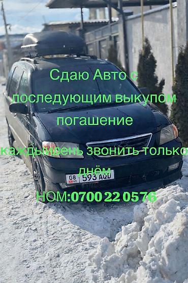 Mazda MPV, чёрный минивэн с полноценным 3‑рядным салоном. Практичная семейная компоновка: раздельные кресла второго ряда с подлокотниками, третий ряд, просторный проход. Тканевая обивка, сдвижные боковые двери. Тонированные стекла.