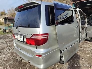 Toyota Alphard G (первое поколение, рестайлинг) — серебристый минивэн с киргизскими номерами.