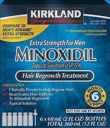 Minoxidil Kirkland 5% является уникальным лечебным премиум средством, способствующим стимуляции роста мужских и женских волос. В нем содержится этиловый спирт, пропиленгликоль, минеральная вода, но главную пользу приносит именно миноксидил. Лосьон эффективен против алопеции, способствует замедлению процесса облысения у женщин и мужчин. Лосьон способствует увеличению объёма волос, густоты, способствует активации роста бровей, бороды и усов, укреплению кончиков, восстановлению корней, обеспечивает интенсивное увлажнение. Косметическое средство реконструктор может применяться для использования в домашних условиях, подходит для комбинированной, проблемной, чувствительной кожи, обладает нейтральным запахом и приносит большую пользу. Данная косметика обеспечивает должный уход и эффективна даже в том случае, если в наборе с ней не используются специализированные тоники, шампуни от перхоти, моделирующие бальзамы, дермароллер, сыворотка, ароматизированный кондиционер, натуральные витамины.