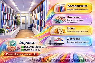 Мир ткани — рынок «Мадина», сектор Север 1–19. Ассортимент: -