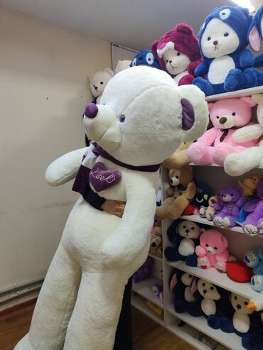 ΠΠΎΠ»ΡΡΠΈΠ΅ ΠΏΠ»ΡΡΠ΅Π²ΡΠ΅ ΠΌΠ΅Π΄Π²Π΅Π΄ΠΈ - ΠΡΠ³ΠΊΠΈΠ΅ ΠΈΠ³ΡΡΡΠΊΠΈ-ΠΌΠΈΡΠΊΠΈ ΡΠ²Π΅Π»ΠΈΡΠ΅Π½Π½ΠΎΠ³ΠΎ ΡΠ°Π·ΠΌΠ΅ΡΠ° β ΡΠΎΡΡ ΠΏΡΠΈΠΌΠ΅ΡΠ½ΠΎ ΠΎΡ 140 Π΄ΠΎ 170 ΡΠΌ (ΠΏΠΎ ΡΠΎΡΠΎ Π²ΠΈΠ΄Π½ΠΎ, ΡΡΠΎ Π²ΡΡΠ΅ ΠΏΠΎΡΡΠ° Π²Π·ΡΠΎΡΠ»ΠΎΠ³ΠΎ ΡΠ΅Π»ΠΎΠ²Π΅ΠΊΠ°). - Π Π°Π·Π½ΡΠ΅ ΡΠ²Π΅ΡΠ°: ΠΌΠΎΠ»ΠΎΡΠ½ΠΎβΠ±Π΅Π»ΡΠΉ, ΠΊΡΠ΅ΠΌΠΎΠ²ΡΠΉ, Π±...