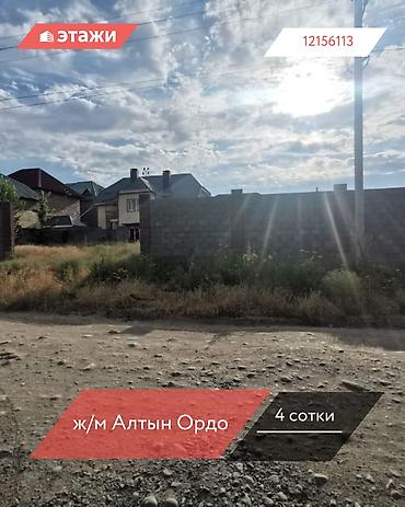 Продаётся участок 4 сотки в ж/м Алтын Ордо 10-я линия. Отлично подойдёт под строительство дома. Все коммуникации рядом, удобный заезд, спокойный жилой массив. Участок ровный, правильной формы, можно использовать как под таунхаус или частный дом.Территория полностью огорожена.Рядом расположены городской каток,Аю гранд,университеты Ата Тюрк Ала тоо,школы и детские сады ,Гиппермаркеты. Очень хорошая транспотрная развязка.Два участка рядом,можно выбрать любой.