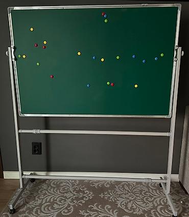 - Поверхности: с одной стороны белая маркерная (сухостираемая, магнитная), с другой — зелёная меловая (магнитная).